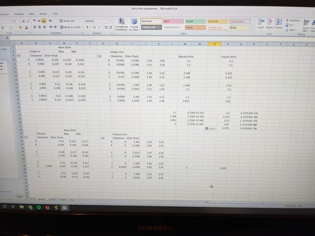 Lmao @ the valve shim spreadsheet. That is exactly what mine looked like but I color coded it which just made things worse. It eventually ended up having 5 different colors and being impossible to understand if you were to walk away from it and come back. But hey it worked, all valves sit at the loose end of the tolerance range except for one exhaust valve which is good enough for me.