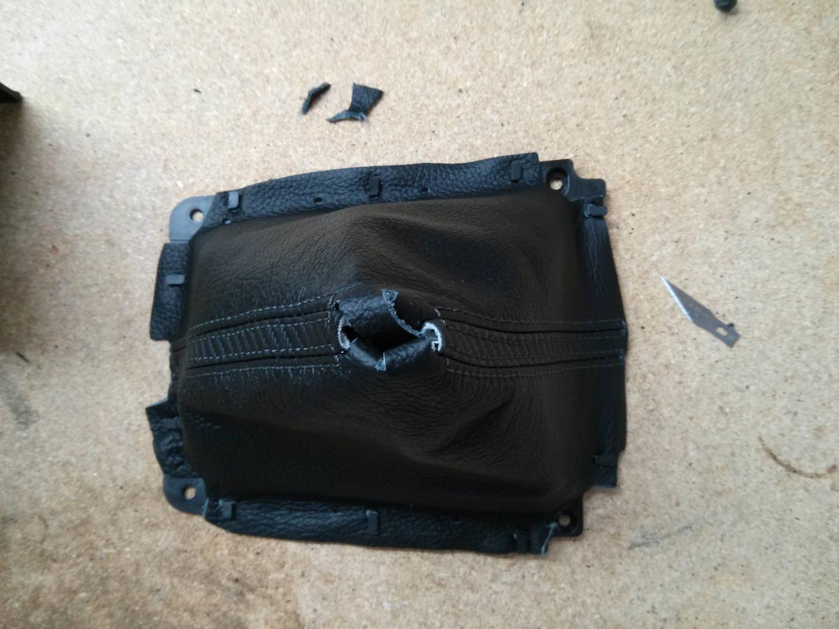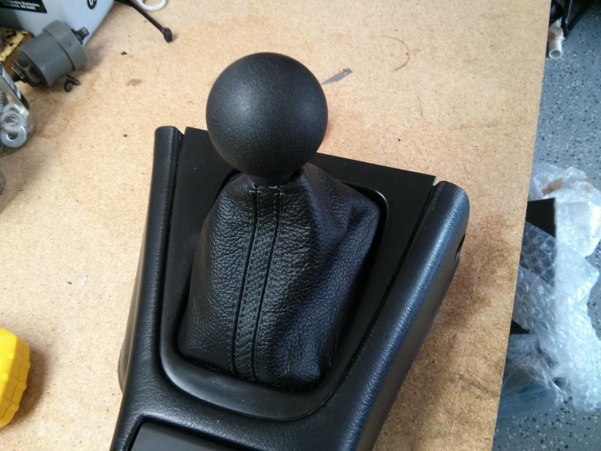 I know it's silly, but the factory vinyl boot was covered in oil and coming apart. Had this one made for cheaper than I found most and actually turned out nice I thing. The redo on the steering wheel will match the pattern. It's looking pretty poor to and will probably be coming apart soon as well. Black leather with a carbon vinyl stripe with charcoal thread.