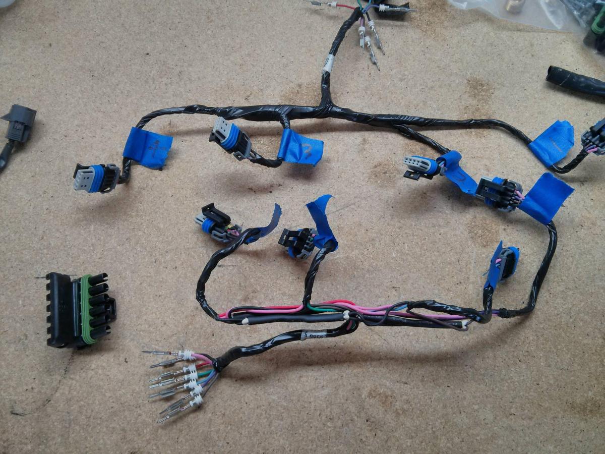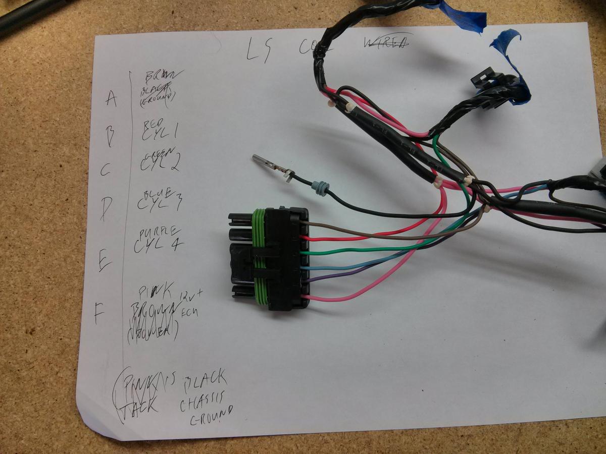 LS coil harness. Labeled what goes where and then clipped off the pins. Re-crimp on the weather pack connectors.