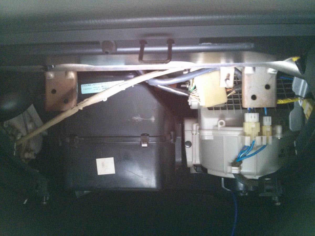It will just fit between the A/C cross tube and the back of the glove box.