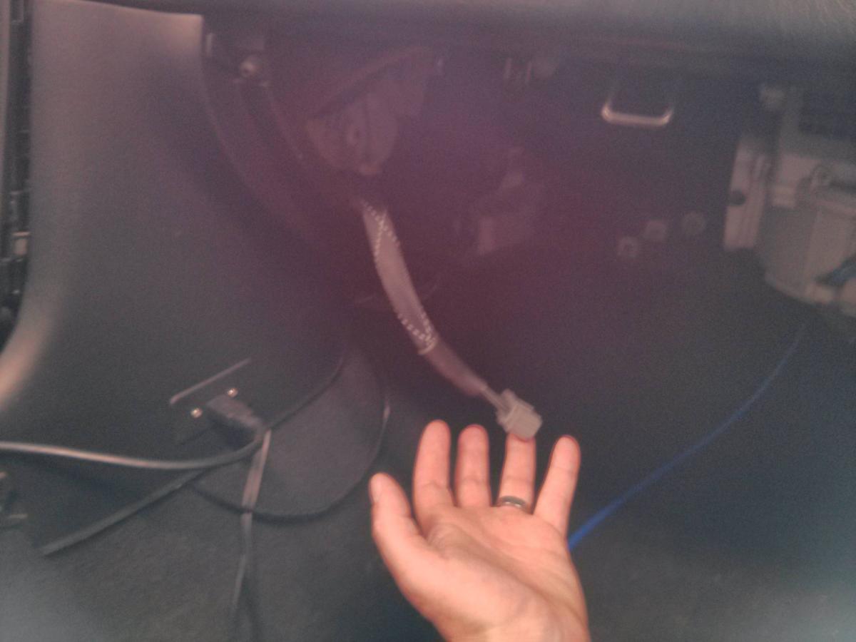 The issue is this connector will not reach. The factory engine harness, the left two connectors, will reach if pulled back through from behind the center dash it seems. Just the one connector that come from the chassis harness will never reach. Might call Boomslang and see what a 3ft extension would cost. The thing won't fit well under my seat unless you count sitting on the case okay. Thought behind the seat, but then I need an expensive harness extension and the MAP line will be run under the carpet, so that's a no go. Any other ideas welcome. Especially a way to mount it behind the glove box.