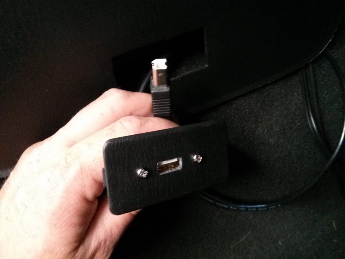 I understand that's not what you're using it for but it sparked my light bulb. I bought the blue tooth adapter but if i hadn't. I'd probably be copying this. Like you said about getting a 90; I would have probably put that panel to the right of the shifter. That way it would be facing up and out of the way.