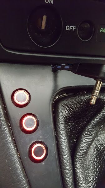 The mentioned hard buttons. LED halo is wired to the headlights and dimmer. The stereo male plug is the DetCan wire from the engine bay to laptop. Prev-owner had a notch there for a turbo timer and repurposed it for this. I want to put a female jack in and make it more permanent and clean. Also new center console would be nice.