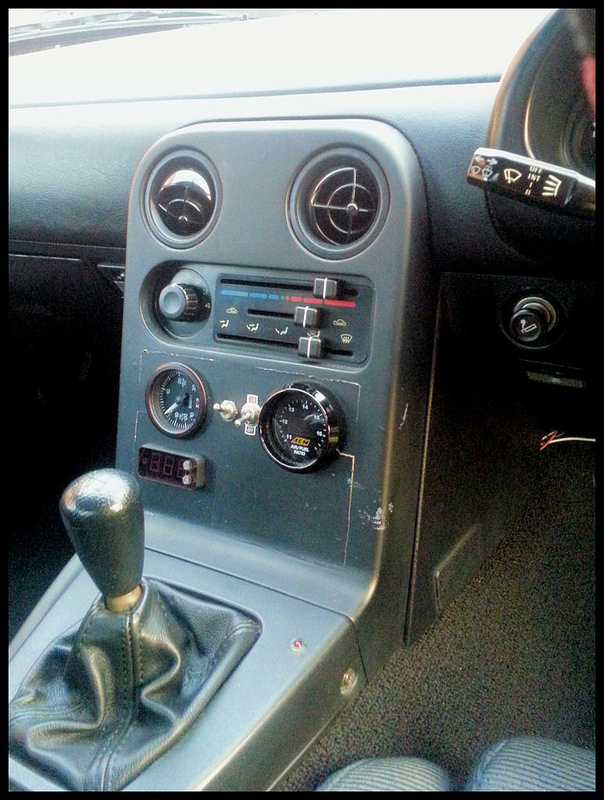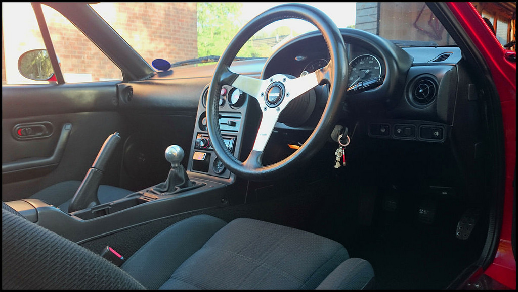 As this is primarily a road car, its important to have a stereo. When I bought the car the tombstone had been fillered and balsa wood-ed (?) with the gauges slapped in. That went in the bin. Seats wrecked/ripped, gaiter torn, carpets filthy etc. I just picked up a half decent, not too OTT headunit, and during the rebuild I replaced the seats with some really good condition early versions. There's a pair of Coax pioneer speakers in the doors, I used the same 3M rubber sound deadening as the cabin to dress the door skins - so the speakers sound great, deep, with no rattles. Useful audio with the top down! The carpets were all cleaned, door card cleaned up etc etc. I have a 'Luisi Nardi' steering wheel and a Voodoo weigthed ****. Just enough shine/brushed silver, no chrome overload here thanks. Its clean, not too far from standard, and IMO just 'right'.