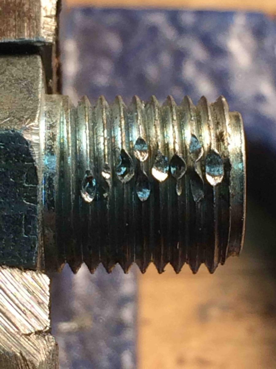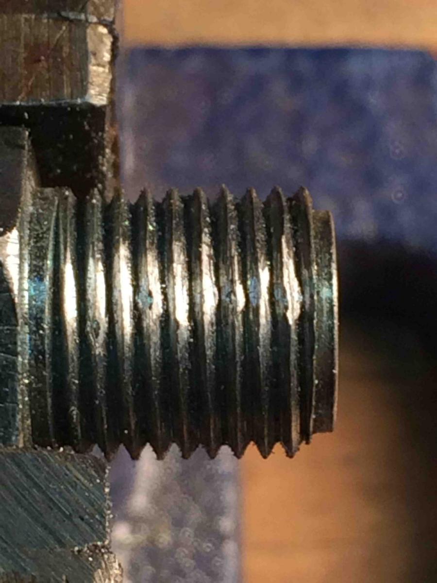 One of the big mistakes was when I removed the oil line threaded fitting I stuck it in a vice, not thinking about how'd the threads would get jacked. I went looking all around for a replacement, but this stuff you can't find but online. I couldn't even fine a die for it either. After hours wasted, decided to use a file to see if that'd do the trick. Otherwise, another part order would set me back days waiting for the part.