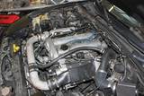 Everything sort of started to spiral at that point. A stock Ubercharger kit will make enough power to punch the connecting rods through the block, so I horse traded my way into a Supertech 2L big bore motor, complete, machined and ready except for connecting rods. The same guy let me buy a '99 head to go with the NB Ubercharger kit. I also grabbed a Boig header from a local guy who had gone turbo, but the Boigs come with a 2" collector, which wouldn't even sort of do. Plus I just couldn't bring myself to put a spray bombed mild steel header on my car. This was the result: