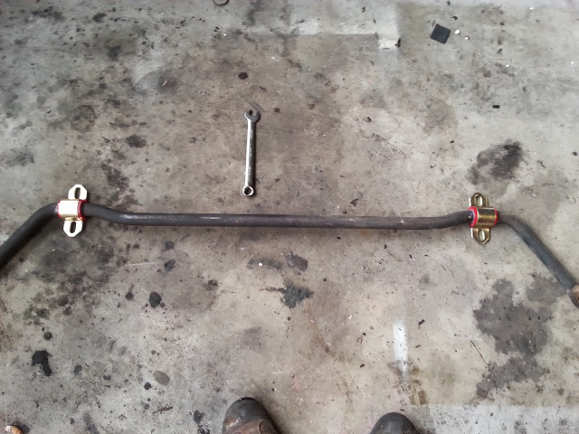 Addco is a piece of **** company that happens to be the only people left making swaybars for these cars. (Well... unless you count Whiteline, but i'll bite my own dick off before spending $350 on a swaybar for a junk car like this.) HOWEVER, Addco seems incapable of sending bushings and brackets that actually work with their bars on this car. They'll send some to you, they'll charge you for them, but they don't work. I'd rather give $16 to Prothane for some universal 7/8" bushings and brackets in this case, and i'll just grind them bitches down to a tab on one side that fits in the subframe slot. In the front, i modified a set of Energy Suspension Grand Cherokee front swaybar bushings i had laying around for some reason, and stuffed them in the stock brackets. I'm hoping they'll be nice and bind-y.
