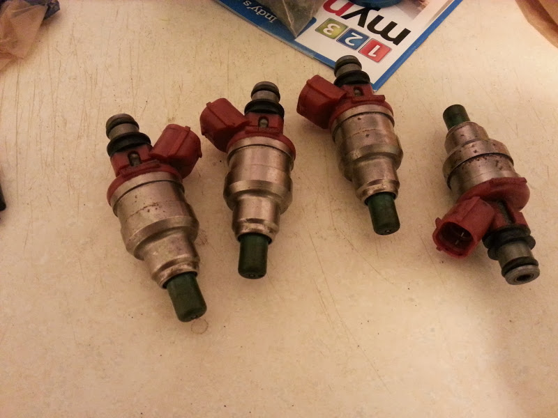 These motors don't deserve good injectors, so i decided that some RX7 460s pushed to around..... 50psi base fuel pressure should be sufficient.
