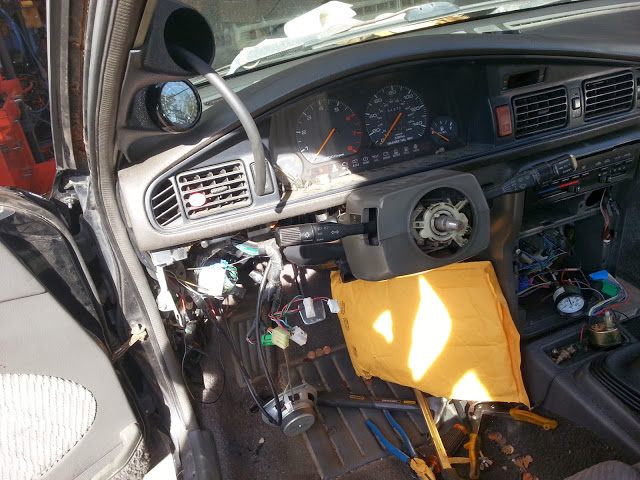 It looks empty over here, because **** is missing. On purpose. All of it. Power steering? We don't need that. Spool *********** a lot, so he has incredible forearm strength and will have a grand old time horsing this pig around an autocross course wearing 245/45-16 tires. A/C? Bitch please, the exhaust goes there. You have windows, use them. Inhale the delicious exhaust. Get high.