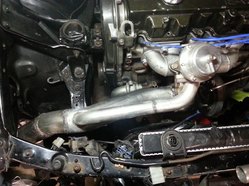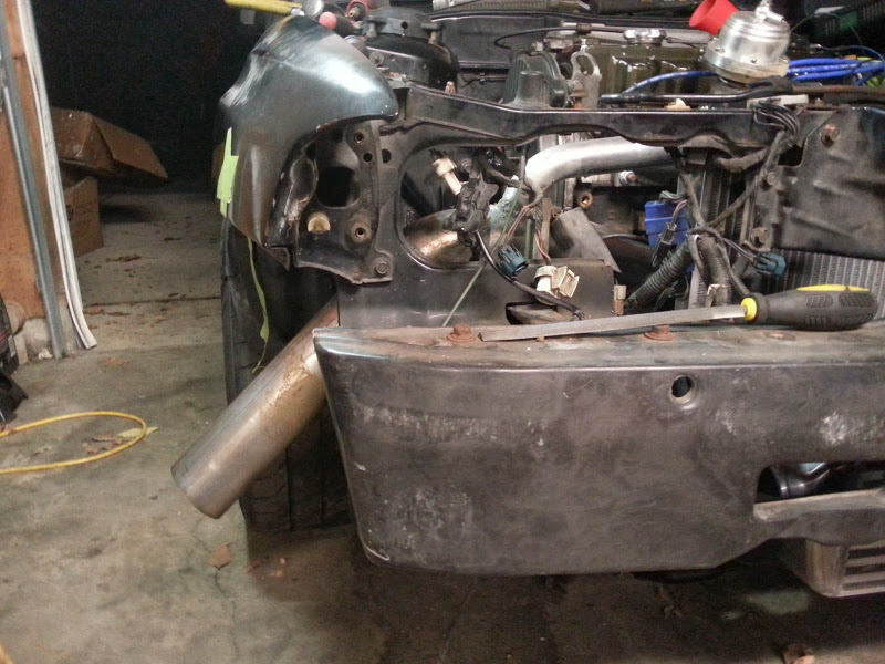 Going to end up slash cutting the exhaust to be somewhat flush-ish with the bumper. Finalized intercooler piping, just need to get ahold of an 8" piece of 2.5" pipe to finish it, and do some more "clearancing" with the sledgehammer.