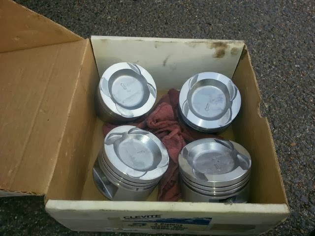 Old NLA Mahle 0.030" pistons because i don't trust newfangled things and wish points ignitions were still things.
