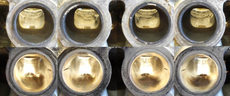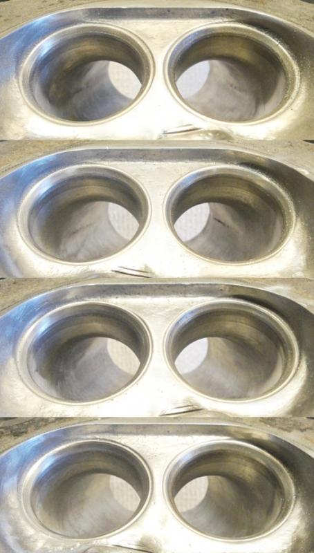 Yep, two chambers have cracks between the spark plug boss and exhaust valve. Shitty casting. The two that have the crack have less distance between the two.