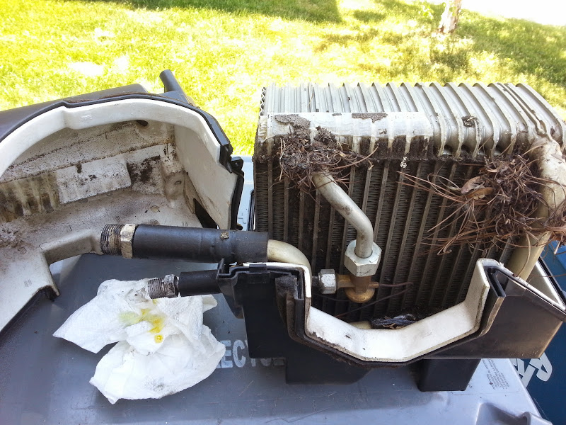 Threw this gross **** out, put the empty box back together. Way cheaper than ordering the actual delete pipe from Russia, and end result went from 9lbs to about 6oz. And more airflow! And no more gross ****!