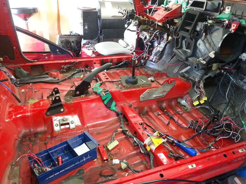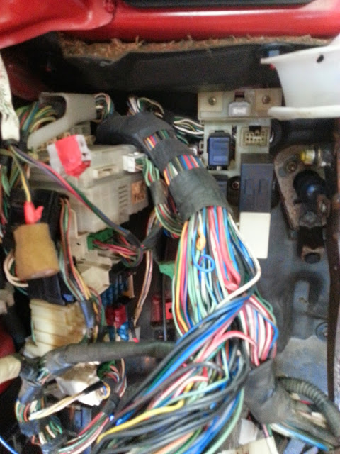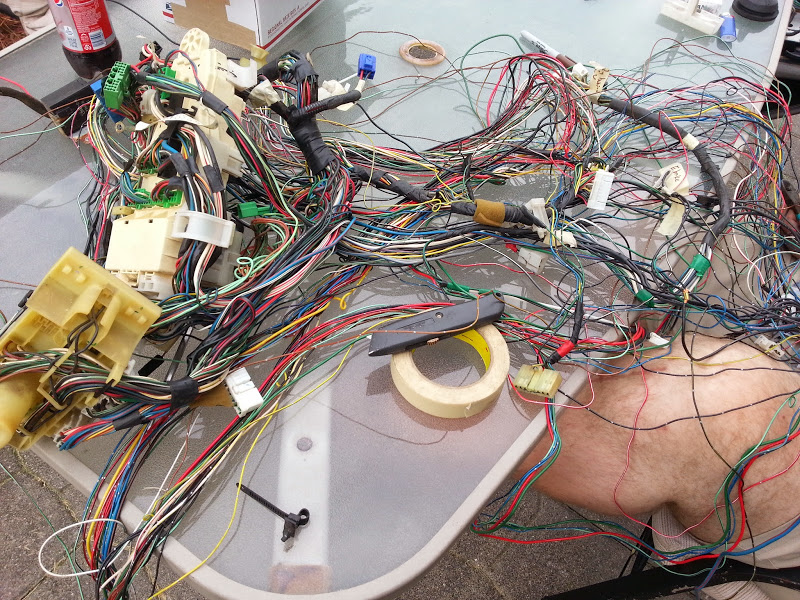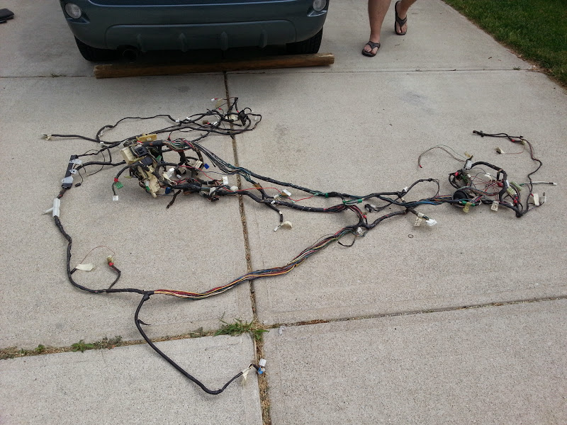Ok, so what have i done here? I've removed about 10lbs of wire, plastic brackets, and over 500 feet of electrical tape that are not necessary to be present in order to drive the car. Another 20-30 wires are coming out of the chassis harness once i gut the corresponding circuits in the dash harness.