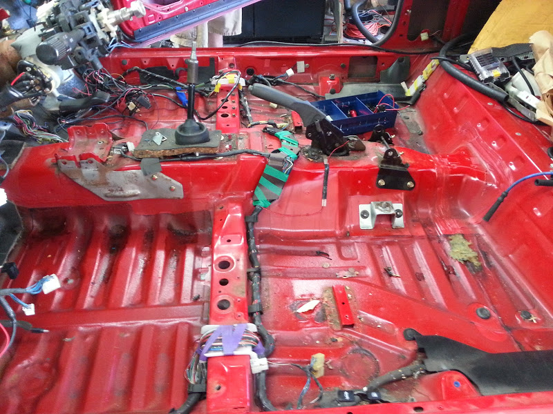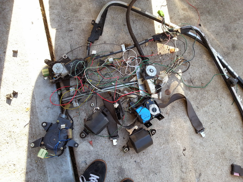 Blurry pic of each of the 4 harnesses in the car after stripping.