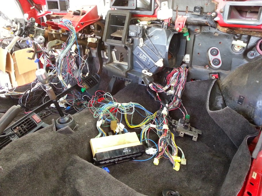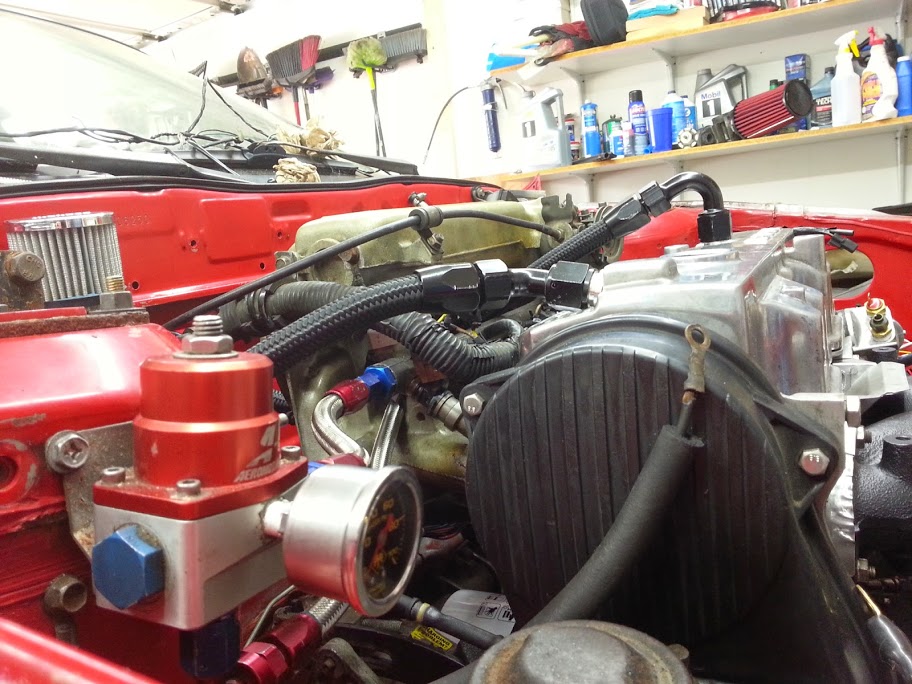 Just need to run another vacuum line or two, mount up intercooler/piping, attach battery, and see if she cranks on Wednesday. If it cranks and pump primes, will move forward with re-wiring pump, putting fresh gas in, and trying to fire it on Thursday. If fire on Thursday, will have wiring cleaned up on Saturday and interior will start going back in. Dash last, we have some work to do to mold in some $3 chinese gauge pods awwwwwwwwwwwwwwwyiss.