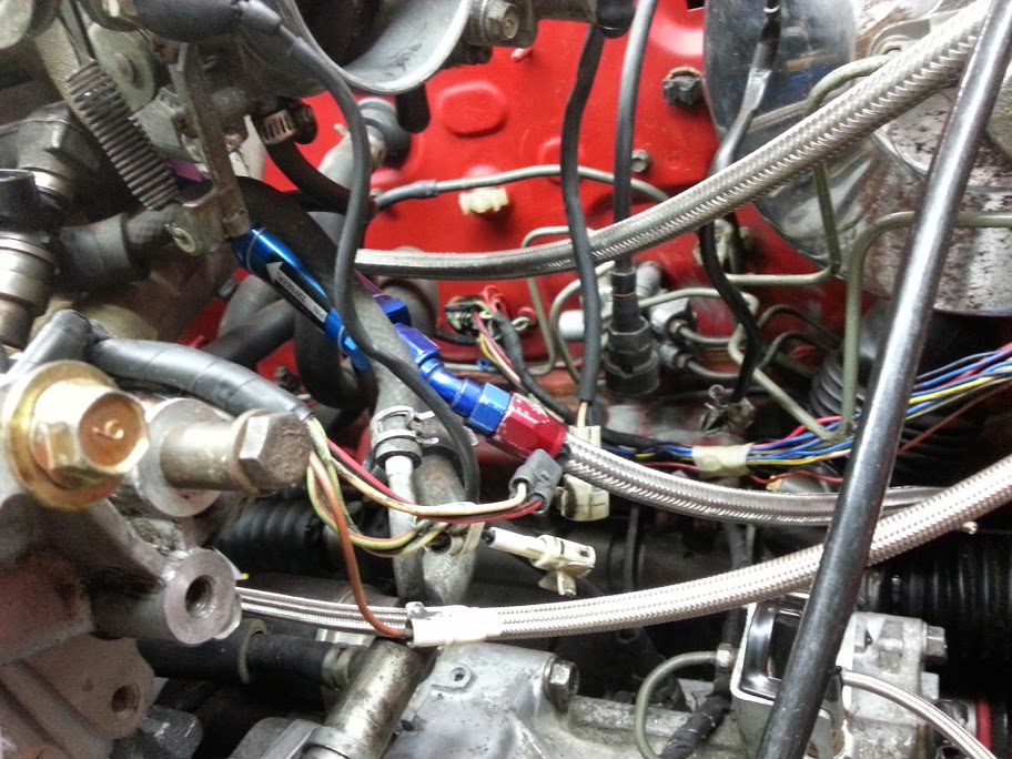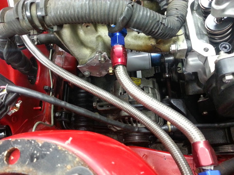 Put AN **** in my block because rubber/silicone hoses that close to exhaust manifold is no bueno.