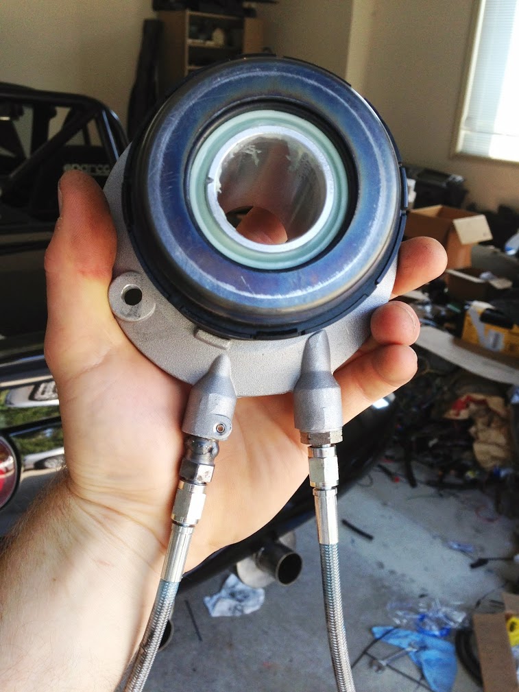 The slave cylinder issue is fixed. The culprit was the adapter fitting that was included in the kit. Something seemed off when I initially installed that fitting, however I just kind of made it fit. You know, push the end of the fitting into the slave cylinder and hammer the hell out of the roller pin until it's in position. To fix the leak, I cut the male AN fitting off of the troublesome adapter and cut the original GM fitting that goes into the slave cylinder in half. I welded them together to make my own adapter fitting. This was a great start, however I realized that in forcing the original adapter fitting fit, I had gouged the sealing surface on the slave. I found a new slave cylinder locally after a bit of calling around and the installation of my DIY adapter was simple and seamless. Most importantly, the leak seems to be totally gone.