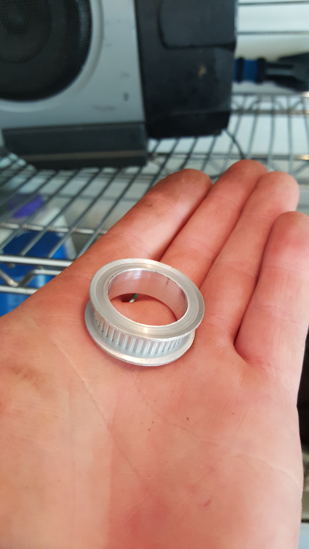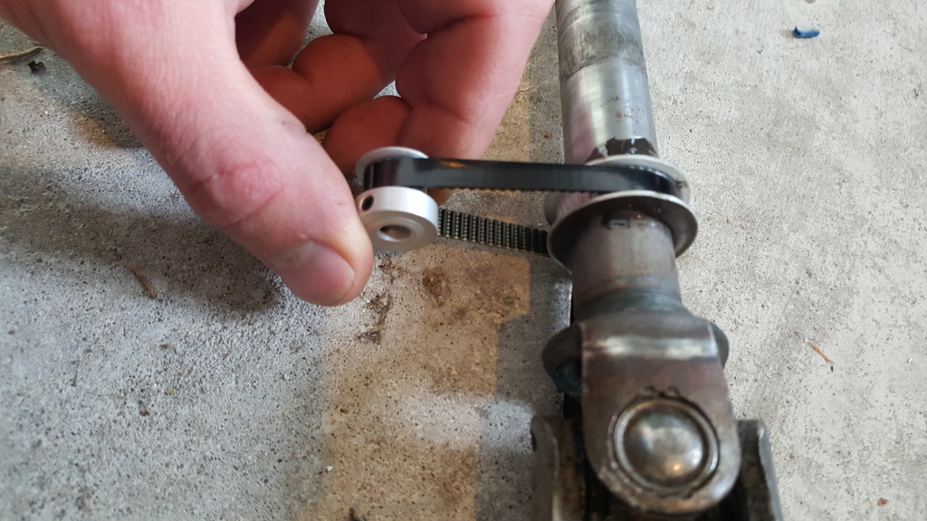 A 10 turn pot went on the small pulley. This proved to be a cheap and easy way to track my steering inputs.
