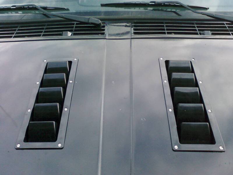 I think that I may end up going with marine vents. Some of the options are pretty nice, and I'd expect them to cool and look better than a standard louvered panel. The only potential issue is that most of them are made of ABS plastic. The melting temperature is 221* and the max recommended temperature 176*. I've been monitoring my under-hood temperature for the past few days and haven't seen it go above 152*, and that was near the exhaust manifold and about 1" above the air intake.