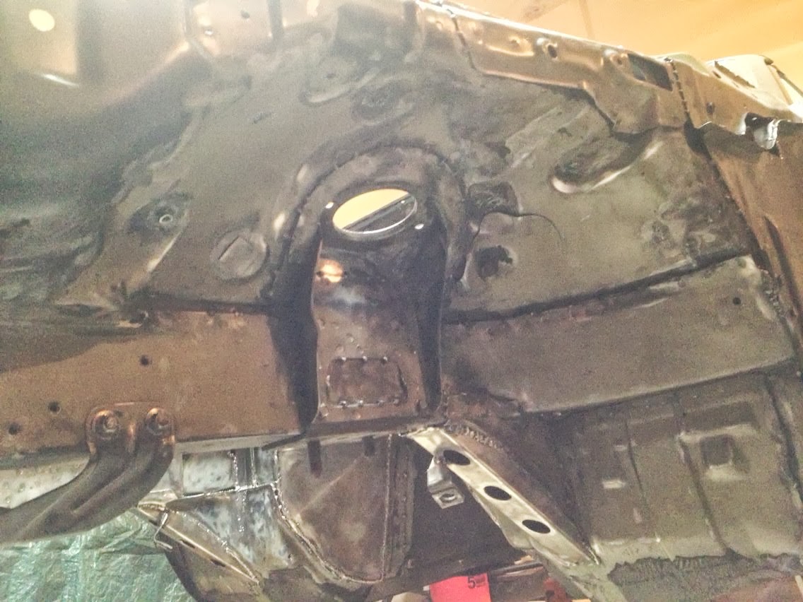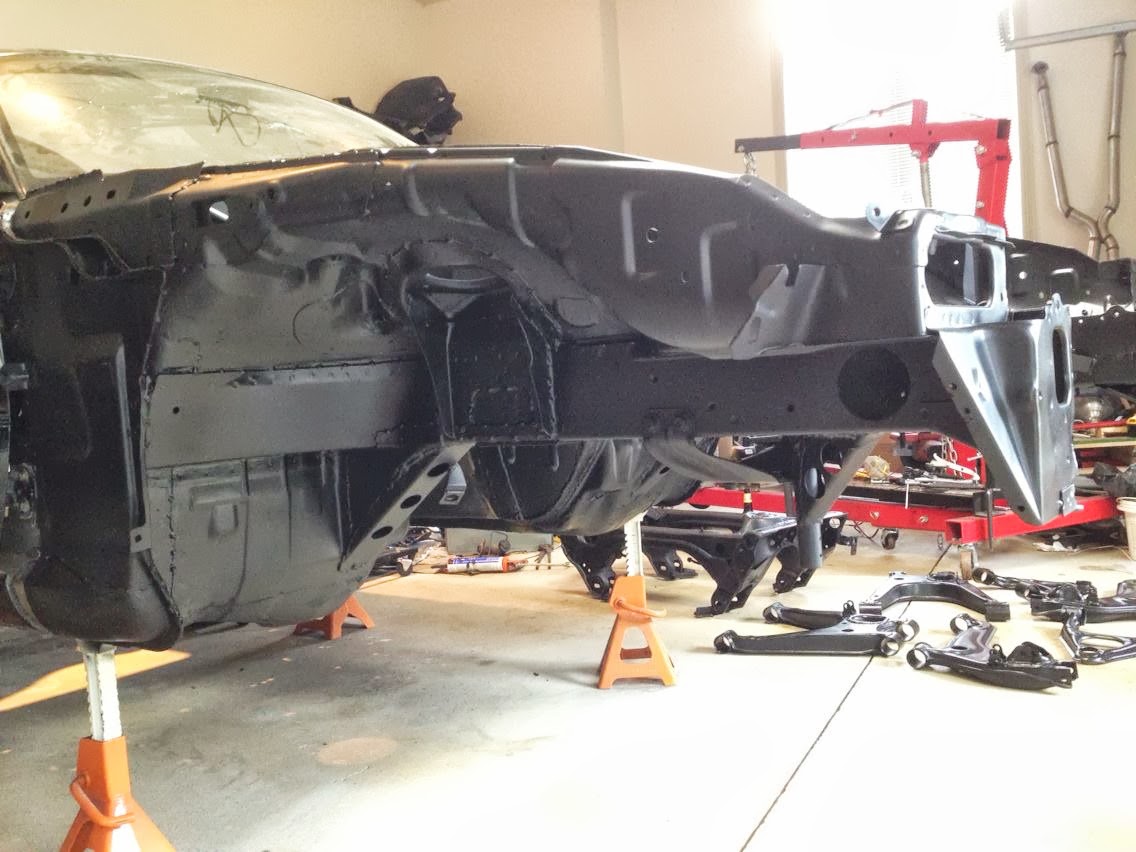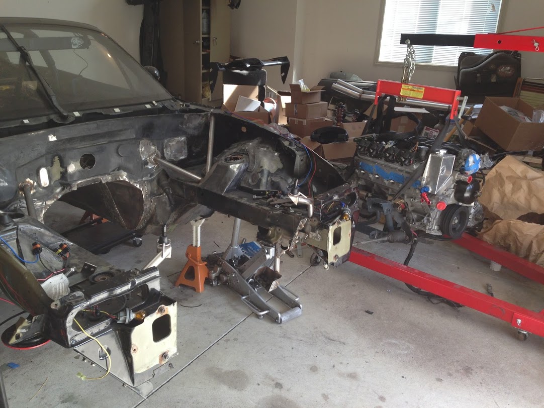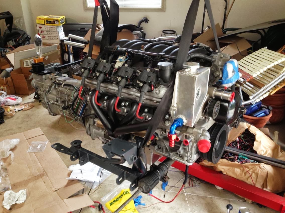 This doesn't look a whole lot like progress however the drivetrain no longer needed to be in for mockup purposes. Now I can finalize a few things in the bay, and before long, I'll be able to begin prepping it for paint. The next time the drivetrain goes in, it should be going in to stay.