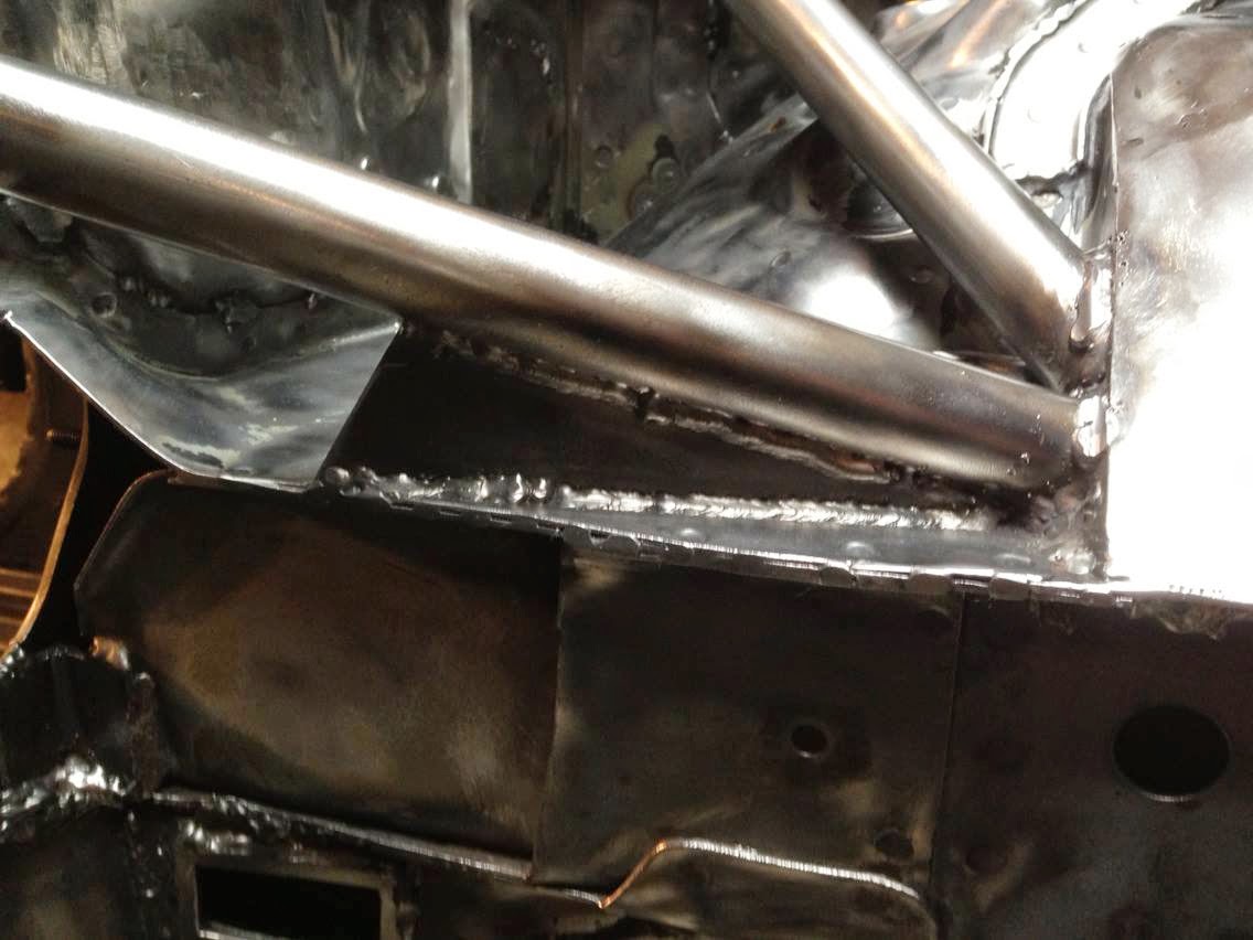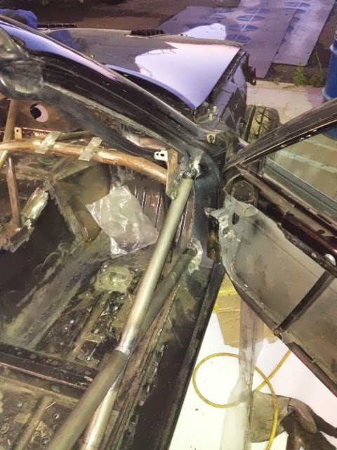 I got an update on the cage last night and it's nearly done! Ryan is doing great work and I can't wait to pick the car up and see everything in person. All the cage needs now is some gussets. The main hoop is 1-3/4" .095 DOM and everything else is 1.5" .095 DOM.