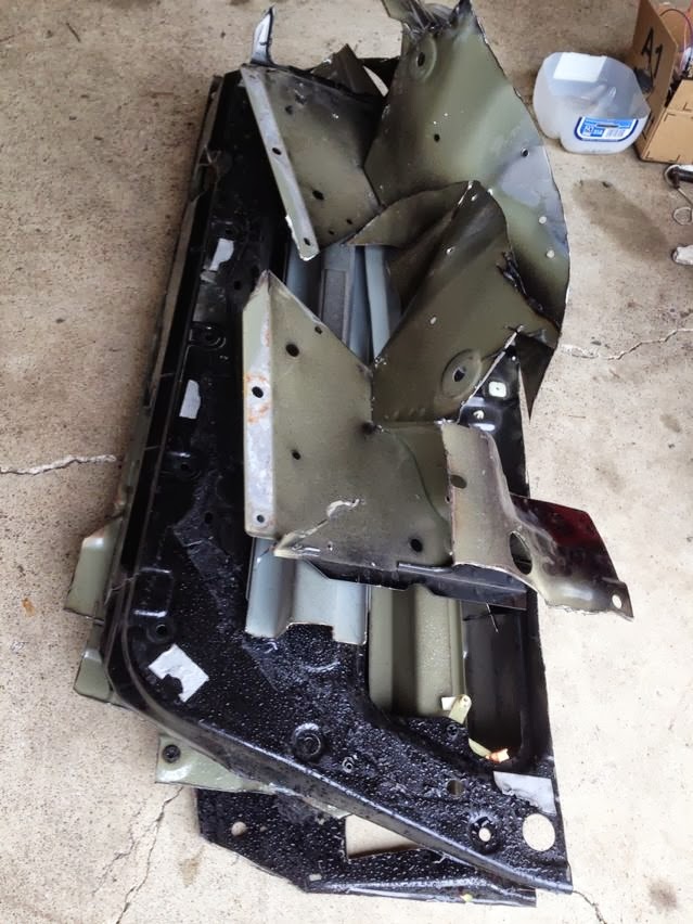 I gutted the doors and removed the OEM seatbelt towers in preparation for the cage. This lot of stuff weighed quite a bit.