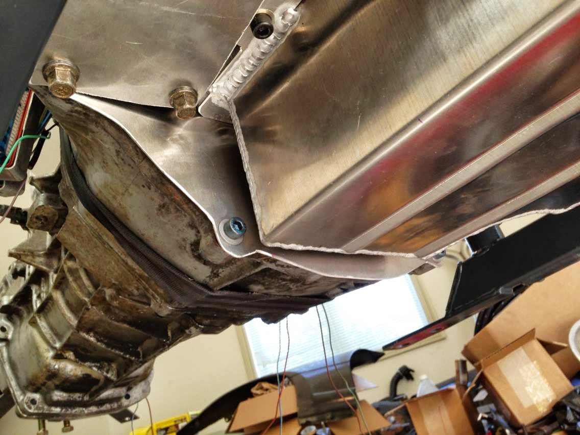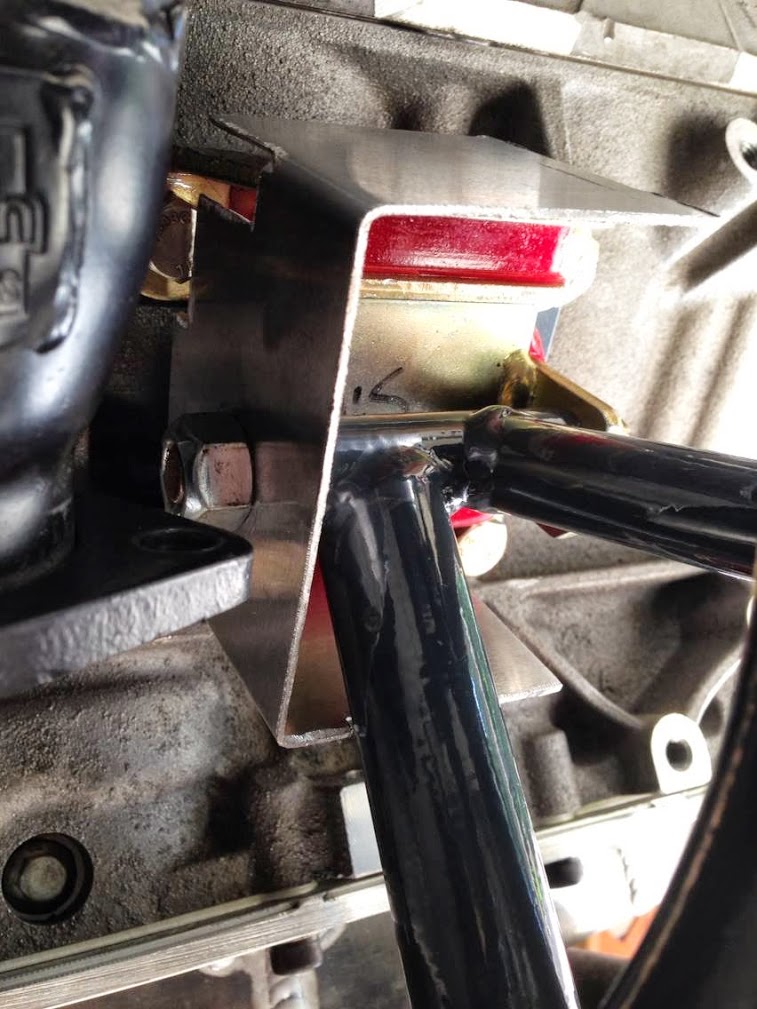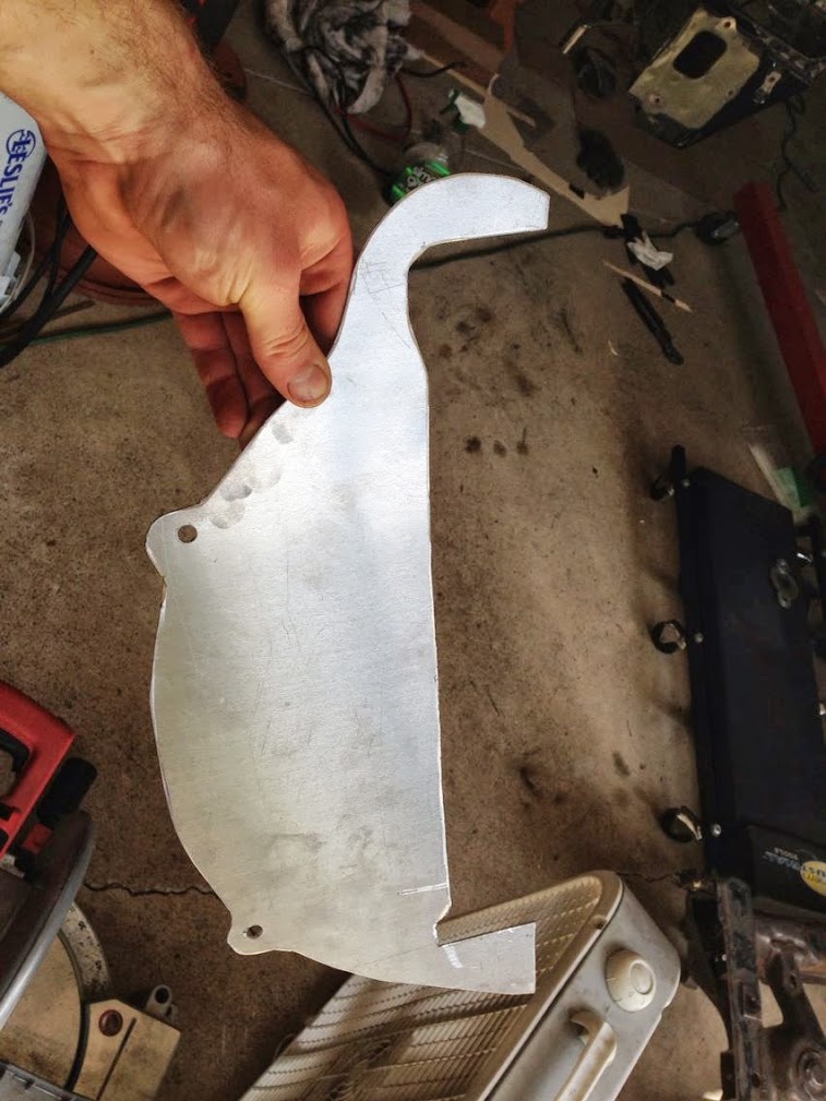 The passenger side motor mount is in close proximity to the headers so a shield with good coverage was made.