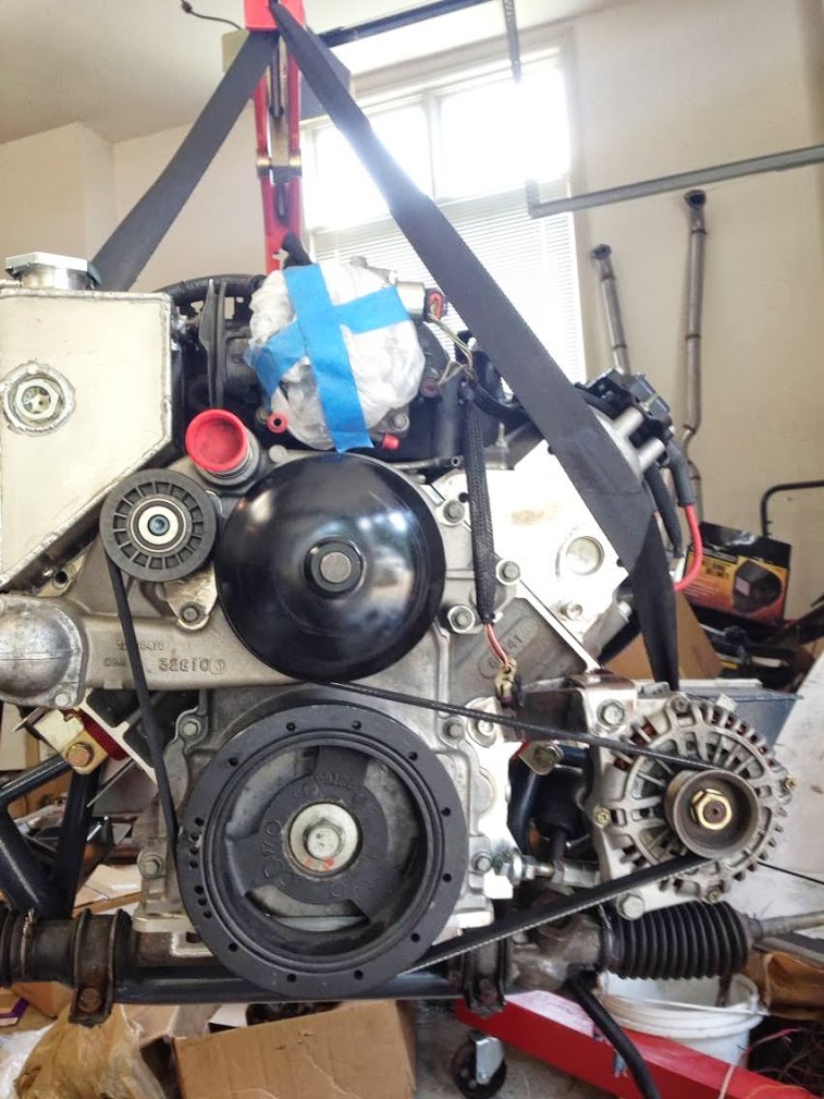 Where I left off in my last post, the oil pan was not installed and the accessory drive was incomplete. I've fixed that...and a few other things