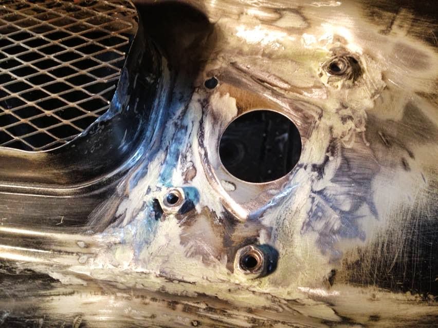 My wiper motor relocation looked pretty haggard for a while because I didn't have a tool that fit into this small space to clean up the welds. Fortunately, I was able to borrow an electric die grinder from a friend and that made short work of this job. With a tiny bit of body filer and some paint, this will practically look OEM.