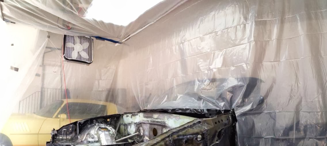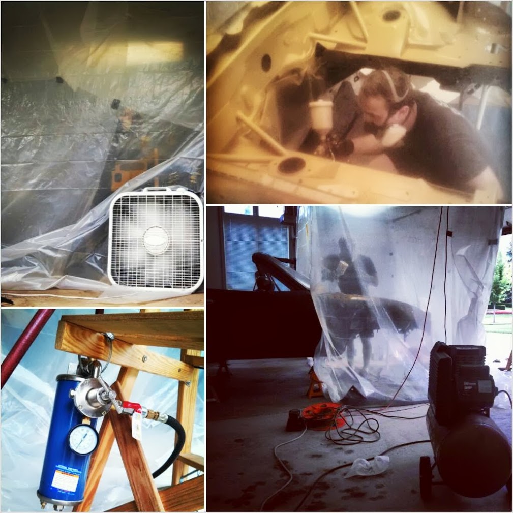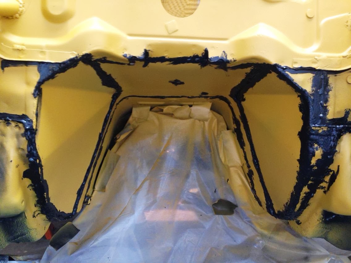 I masked off the exterior as soon as I could in order to safely paint the interior and underbody.