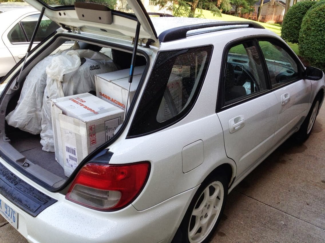 On Thursday, I loaded my car with wheels and tires to meet up with my buddy, who is a tire technician. He hooked it up, and now I have summer tires on the Subaru again, and the RS3's are mounted on my 6ul's. Here's my wagon doing what wagons do best!
