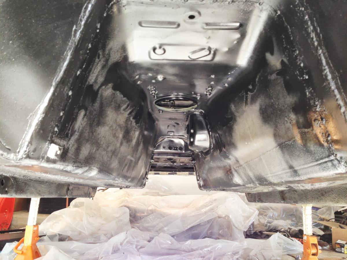 I tackled the underbody before painting the interior. Anything that had any semblance to rust was attacked with a wire wheel, rubbed down with lacquer thinner, painted, and sprayed with undercoat. Due to the base plates of the cage and the stitch welding of the chassis, quite a few areas had to be touched up. I also used this as an opportunity to spray the insides of the frame rails and other tight areas with internal frame rail coating, which is a sticky rust encapsulator that can be sprayed almost anywhere via a multidirectional nozzle at the end of a skinny hose.