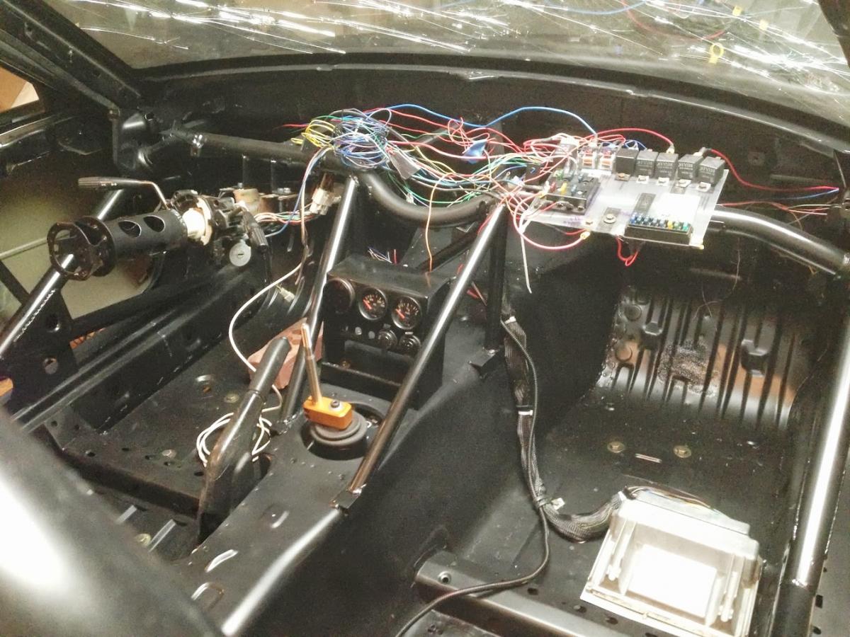 The wiring is mostly together. Most of what you see here was done quite some time ago. What remains is connecting the engine harness to the chassis harness, wiring the gauges, running a wire from the ignition to the starter solenoid, running a heavy wire from the starter to the battery, grounding the engine, and tidying everything up with loom and zip ties. That sounds like kind of a lot, but I should be able to get through it in an evening.