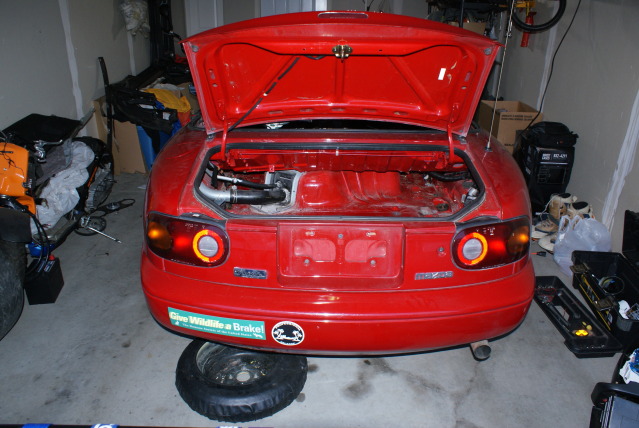 Figured I would finally start my build thread as I spent 15 hours in my truck today so that I could get my 93 NA. Long story short I bought it from an insurance auction and it was supposed to be a theft recovery. From the pics on the site I used to bid most the dash was removed and most of the console ect. Figured it would be a great project so without knowing much else about it other than I could get it for cheap I ended up paying roughly $1400, 925$ winning bid plus all the damn fees. Well finally picked it up today and was very happily surprised when I did. First the car is pretty much rust free, and the motor looks excellent for an older model (I had no idea the mileage as all the interior was ripped out). Well after looking it over I open the trunk and BAM, the whole interior is in there including the speedo ect, and to make it better the car only has 90k miles on it from what the odo said. So overall I got an immaculate car to work with that has enough life in this motor hopefully that I wont have to 1.8 swap right away, oh and it had brand new tires as well.