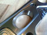 3) Blade deflection is a biatch. I bought the best blade I could find (made for stainless, more expensive than average - I can get the details if you want) from McMaster Carr to speed up the cutting. Then I held a chunk of 2x4 against the side of the blade as I was cutting (especially when starting the cut) to reduce blade wobble and deflection. Do it outside because the wood will smoke like crazy! Also I use a 12" blade even though the saw is 14" because it reduces deflection. After the cut was complete I just kept sweeping the saw up and down against the piece (while applying pressure with said 2x4 when necessary) to clean up the cut and make sure it was parallel to the the blade as it sits naturally. I spent hours doing that...