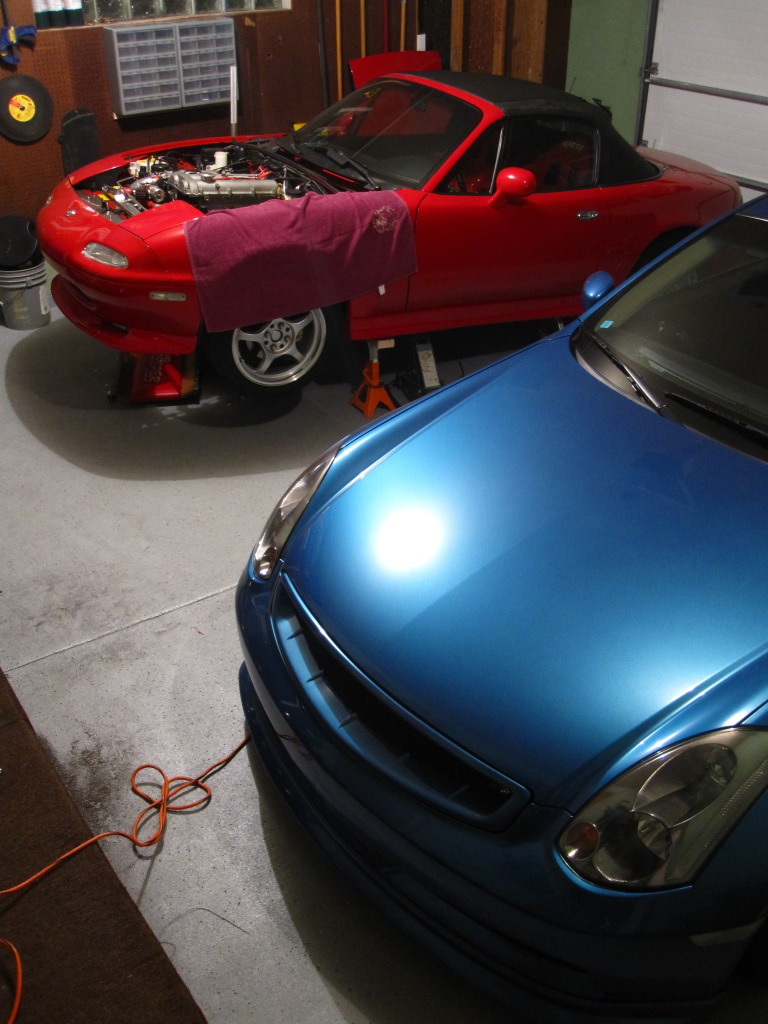 Then I went to a GT28RS drop in replacement from ATP, which made much better power. Fabbed a 3" exhaust, made 268whp/250wtq at 15 psi. Ran this way for more than a few years until this past summer, when I started to hear an exhaust leak and found two cracks in the outermost runners of my manifold, and a crack in the downpipe. At this point the car has about 25k miles on it, so I got about 15k out of the ETD manifold (probably about 15-20 autocrosses, lots of daily boosting, a couple trips to the dragstrip).
