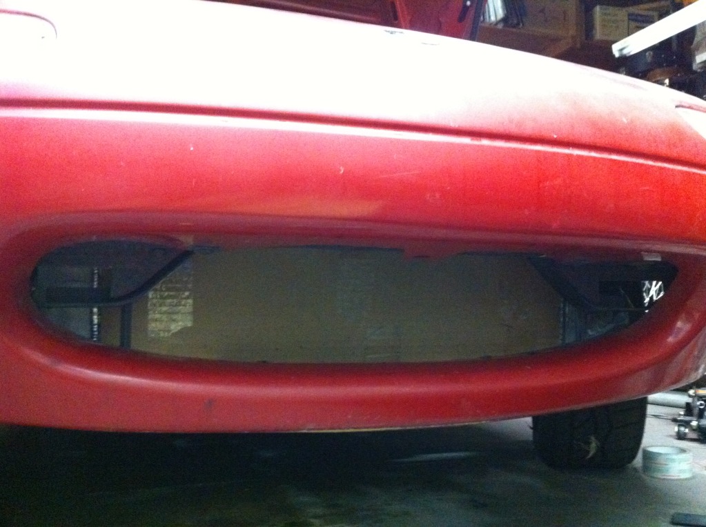 Also, while mounting the IC, I had to take off some of the plastic under ther front bumper where the stock undertray bolts onto. This means that I'll have to make a new undertray, but that will probably happen after I get the car running. I'm just going to use a large piece of 1/16-1/8 inch aluminum and make a nice one piece undertray for below the engine compartment.