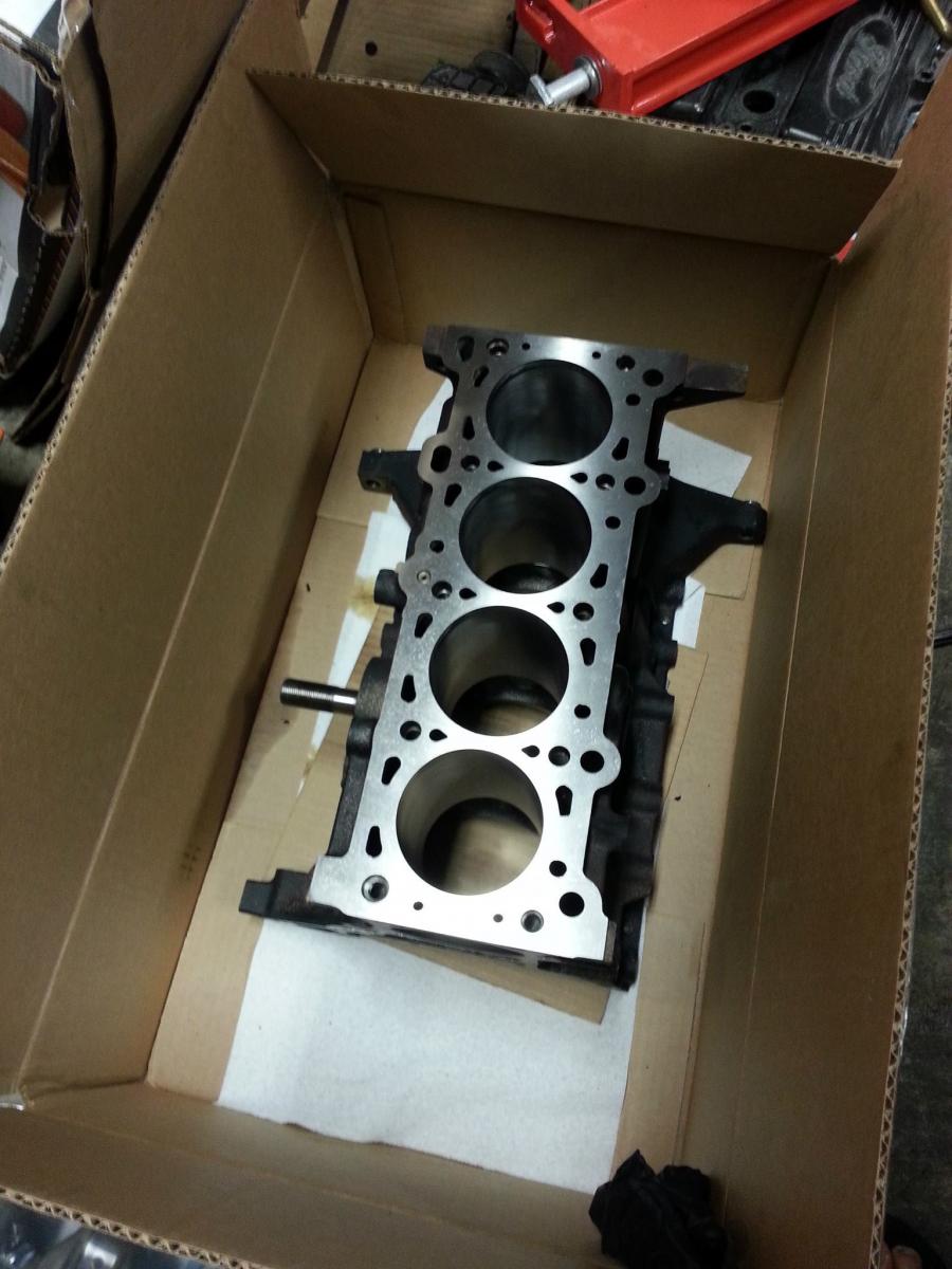 Now for the actual turbo project... First thing we did was buy an engine to rebuild. We got an engine from an Escort GT, which we were going to use the block from, and then we took the head of another miata engine. Got it all cleaned up and machined at the shop and started to build the engine with forged rods.