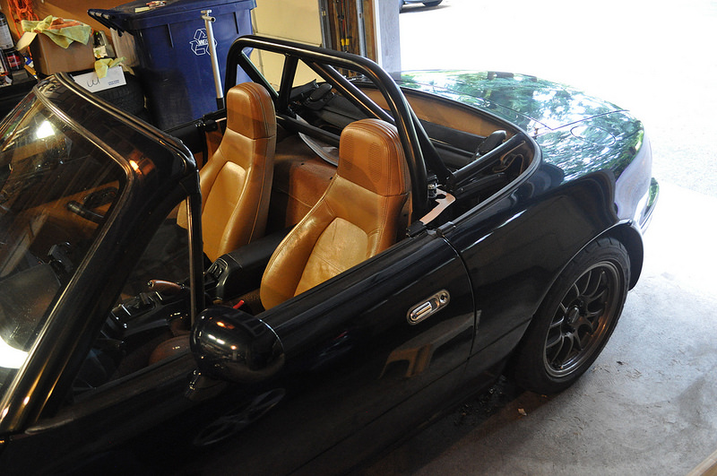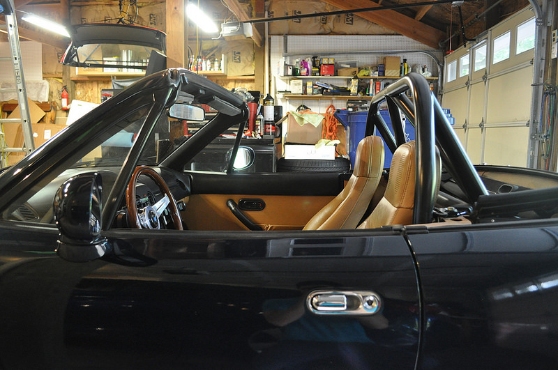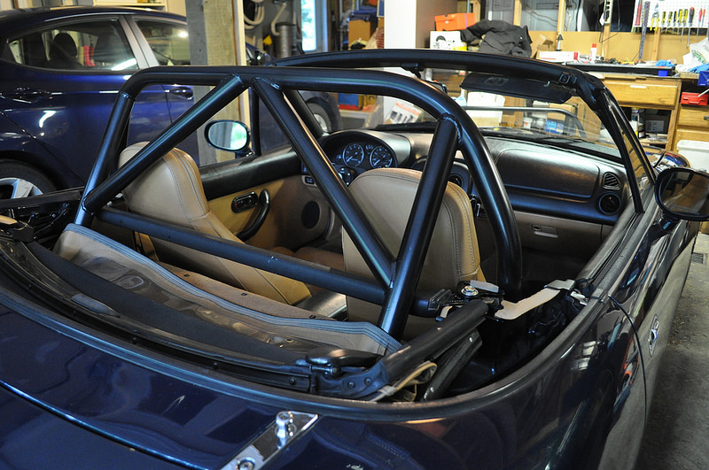 So I decided to upgrade my roll bar to a beefier one with diagonals. Both are Hard Dog. My cousin sold his miata and left his roll bar in my garage for months. I decided I'd buy it off him and sell the old one. It looks like it's better for my height (I'm 6'0"). I thought it would be a quick swap but the mounting points on the rear are further back. So new holes had to be drilled and ABS had to be relocated.