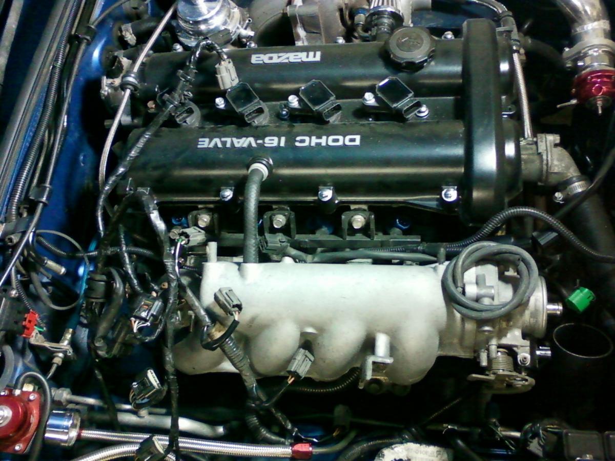 12~14psi at the moment. Slowly working my way to 15psi again. Just trying to smooth out the fuel map. Since the used engine has lower compression pistons then the Miata I'm guessing the VE has changed a bit? I'm seeing my fuel curve moving towards a higher RPM. Not sure on that one. I could probably put a little timing back in due to the lower compression pistons but I'm not going to mess with it. The Protege pistons are dished about the same depth as the Miata pistons are domed. 8.9:1 maybe? Yes, the engine was replaced with a good used engine. The used engine still has a visable crosshatch which is a general indication of it's wear (or lack of). There is no more "piston slap" but it ended up not being piston slap at all. The crank pully was loose. I replaced the pully's hub because it was damaged from being loose. The used engine was torn down to a shortblock, cleaned, painted, and all seals replaced. One rod bearing was removed and inspected and looked fine so I didn't bother messing with the rest. If it works don't fix it right? Engine has Felpro gaskets/seals and a Felpro MLS head gasket. I replaced the o-ring on the heater pipe since it's a pain to get to after assembly. The head was not disassembled and was removed with intake and exhaust/turbo attached, cleaned, and placed back on the used block. The valve cover gasket was reused because it's not very old and still soft. The timing belt and pullys were reused because they only have ~10k on them. Water pump was reused for the same reason. I need to stick some new plugs in it still. BKR7ES is what I use. The drive belts are Gaterback and relatively new. The clutch disc is new and upgraded to the 8.875" MX-6 disc. The pressure plate is an Exedy. Flywheel is stock and both the FW and PP were scuffed to allow disc break-in. I'm also impulsive about using matching bolts so rest assured this engine was assembled correctly. Locktight was used where needed like flywheel bolts and oil used on head bolts ect ect. I've been turning wrenches on cars both as a hobby and professionally for 20+ years.