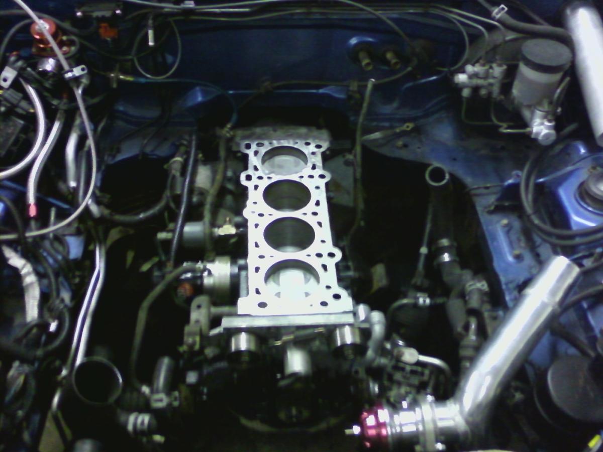 Engine is in and sounds excellent with no leaks. \/ My idle oil pressure is 30psi though. Is that typical? It used to idle at 40psi. Now that I think about it my MX3 BP swap idled about 30. Maybe the FWD BPs run lower pressure? And what a plus that this engine has lower compression dished pistons.
