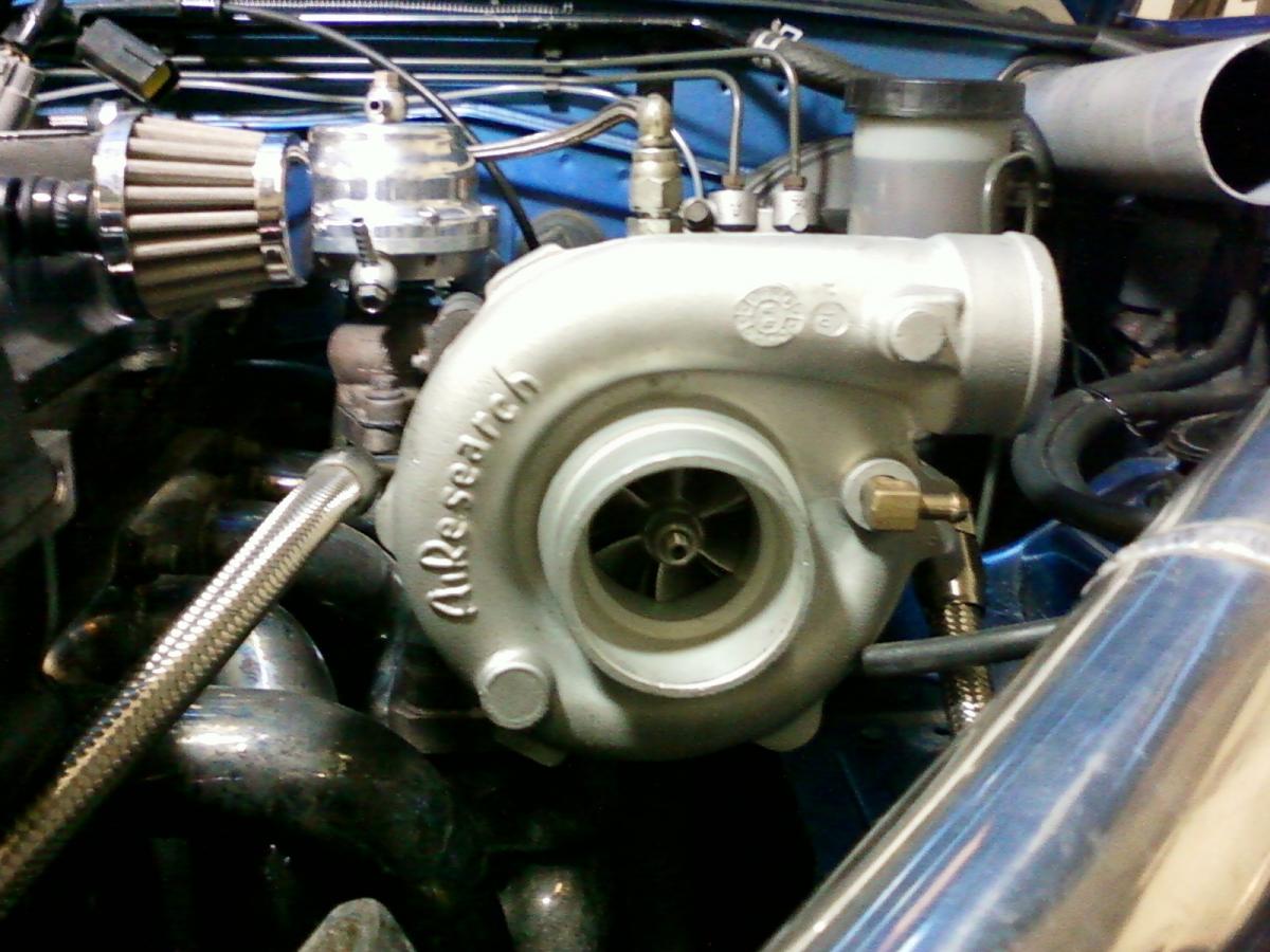 I should mention the T4 compressor was replaced back to the T3 because, for one, it has to spin faster to make the same PSI which actually allows the exhaust side to flow better. It'll pull flat into redline. For two, the T3 is plenty for 15psi. For three, it spools faster due to the compressor wheel being smaller. I start building boost about 2500rpm and hit 10psi by 3100rpm. This is starting off from a 5th gear roll at about 1500rpm then holding WOT and watching the gauges. When your driving the car, the boost comes back so quickly after the shifts it puts you right back into the seat again and holds you there. There's no problem hitting 15psi in first gear except for the sudden loss of traction. I guess the same goes for second and third. haha