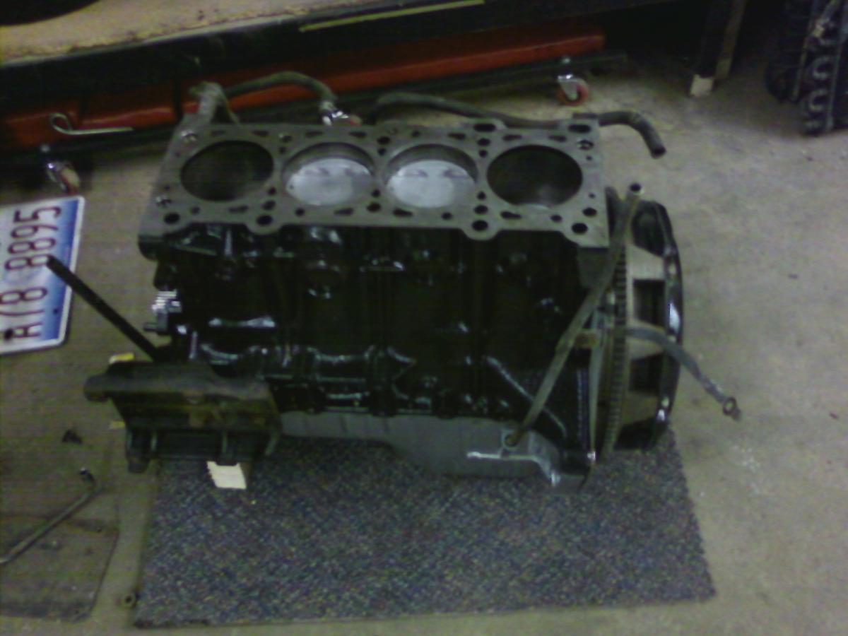 Here's the pics of the old engine and the new engine I bought for the car. This engine came from a '94 Protege and had a MBSP but it wasn't used. I didn't have the RWD pan to fit it. There's a pic of the knocking pully. The key was broken too.