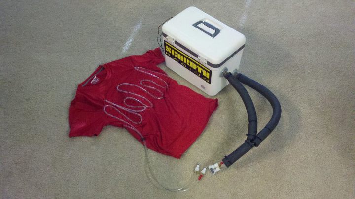 Cool-suit cooler w/ quick-release wiring for easy removal (wired to switch in cabin) and custom mount on passenger side