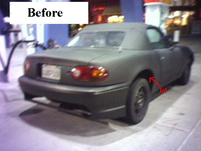 Goofy looking Wizdom rear bumper cover, installed by previous owner. This is the only mod the PO installed that I kept on the car, mostly as a joke. Attached before and after pictures.
