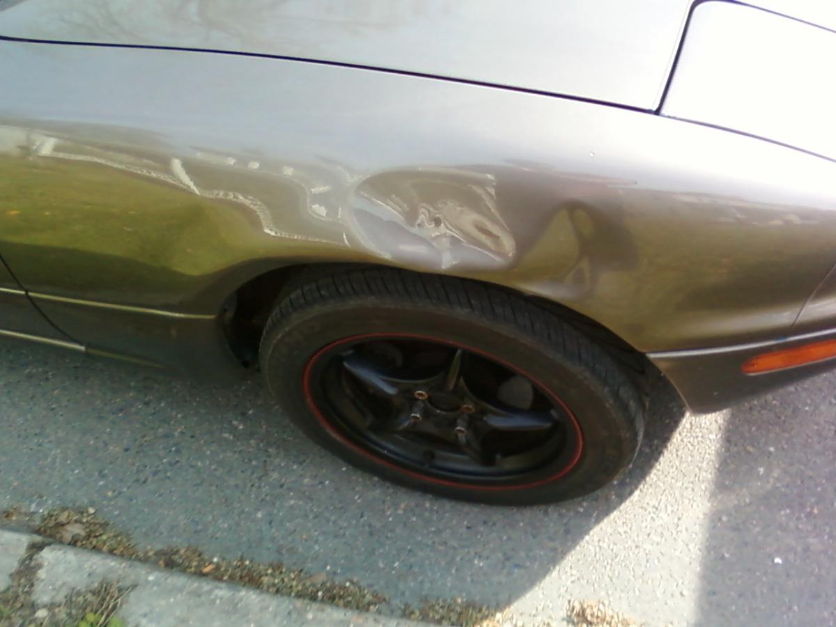It has a dent on the bottom of the car under the passenger side door. This was from taking a turn too tightly and hitting a curb. Also the passenger side fender is dented from another driver merging into me. Other small issues include a single dash crack on the passenger side, the shift boot is torn, the driver's seat has wear on the bolster. These are all issues that are fairly common with a car this old.