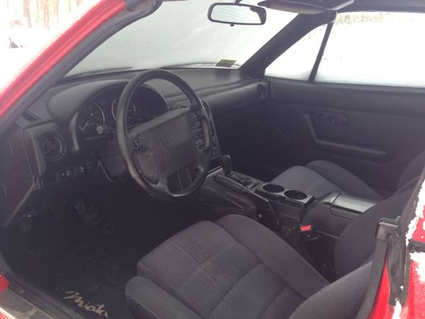 Selling a 93 Miata. It is red, has both a hardtop (which has a defroster and headliner) and a soft top. This car has been very well maintained (have the full service history) and loved it's entire life and it shows. The interior is in superb condition, everything works as it should (including the AC), and the car drives beautifully. It has always started right up for me and never once let me down. This is the last year of the 1.6l engine, and it also came standard with a limited slip differential (LSD).