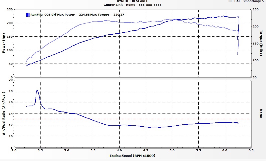 I just came back from the Dyno, 224WHP, 220 ftlbs.