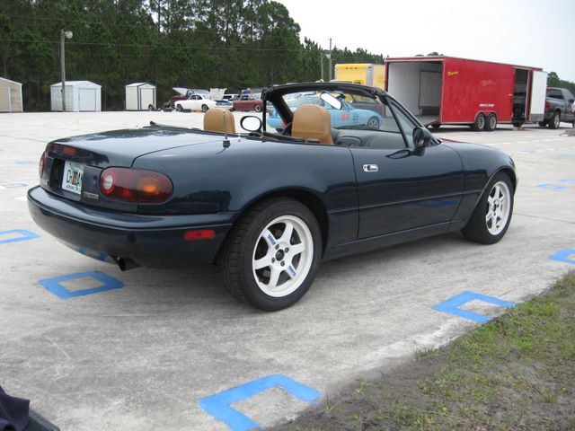 1996 Mazda Miata, 5spd, Montego Blue, Tan top, Tan Leather interior, PW, PM, Cold A/C, 153k miles, Factory Torsen Limited Slip Diff, Koni Sport adjustable shocks, Volk Racing TE37 15x7 wheels with P205/50R15 Falken Azenis 615 tires. These are real Volks and are some of the lightest wheels you can buy at 9.15lbs each.